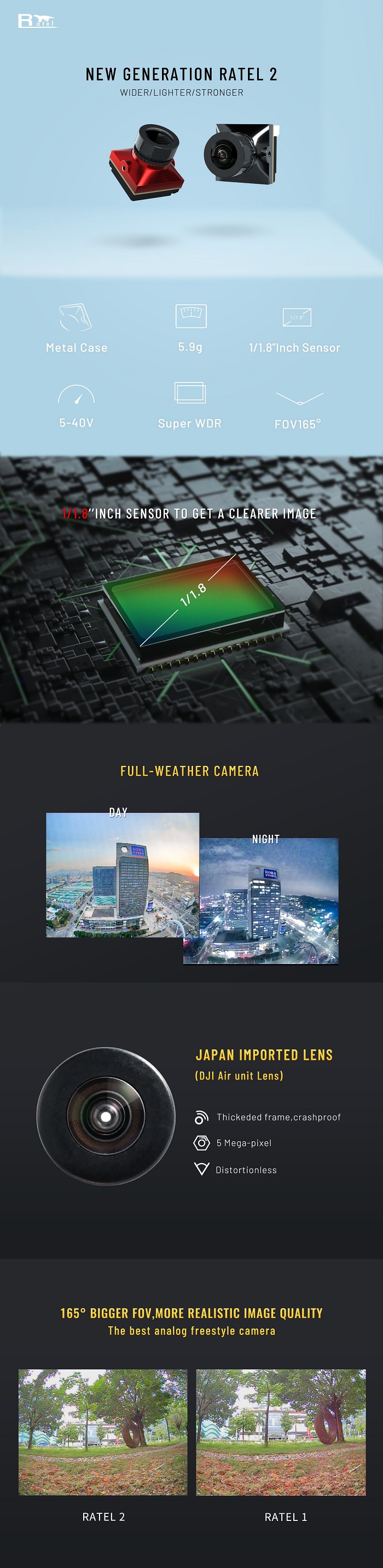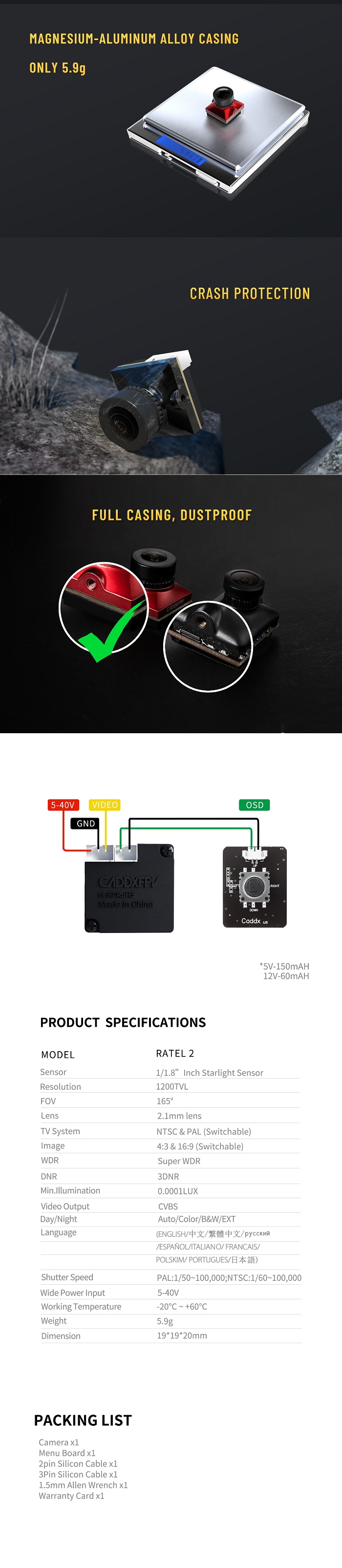Caddx Ratel 2 1/1.8'' 1200TVL FPVカメラ NTSC/PAL 16:9/4:3切り替え式 レーシングRCドローン用 赤/黒選択可能