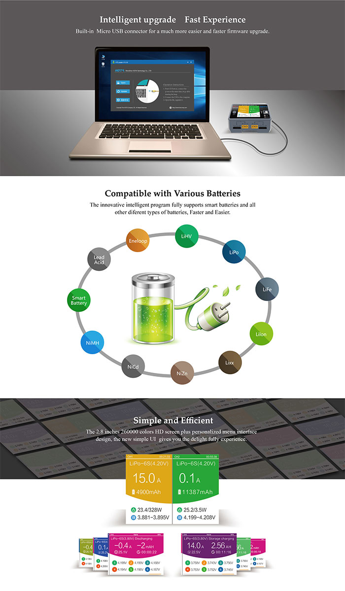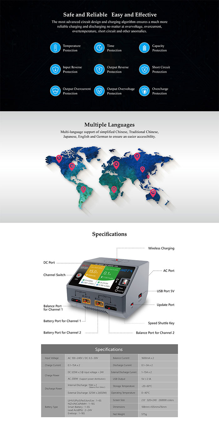 -各種電池対応-TLiHv / LiPo / LiFe / Lilon / Lixx(1〜6S)NiZn / Nicd / NiMH(1~16S)スマート電池(1~6S)鉛蓄電池(Pb)(2~24V)エネロップ( 1~16S)