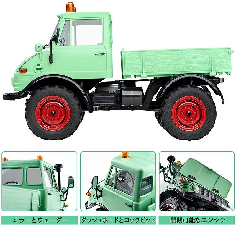 1.【理想的な1:18スケールのラジコンクローラー】:拡張されたミラーとウェーダー、屋根に2つのオレンジ色の警告灯、ダッシュボードとコックピットの内部の素晴らしい景色を提供する窓があります。 荷物を簡単に積み込むために、後部貨物バケットは3つの側面で開くことができます。 オリジナルの車の床と3つのドアパネルはすべて木でできており、rcクローラーは無垢材の質感を模倣するために複雑なパターンを刻んでいます。 実車の正確な再現。