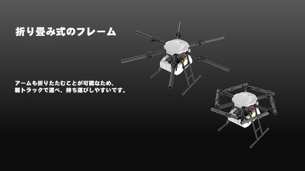 液体の農薬、肥料および除草剤の様々な散布をおこなうために設計されたクアッドコプターです。
