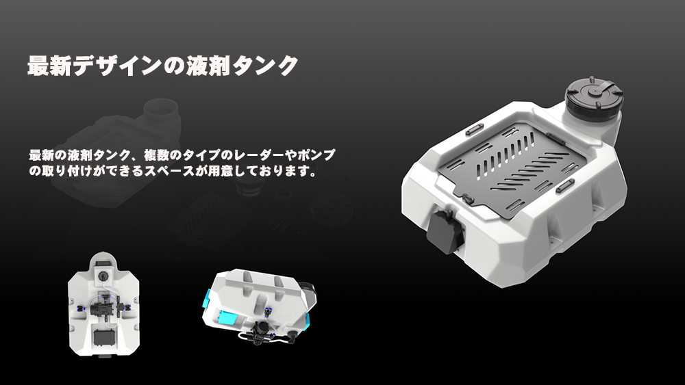 最新の液剤タンク、複数のタイプのレーダーやポンプの取り付けができるスペースが用意しております。