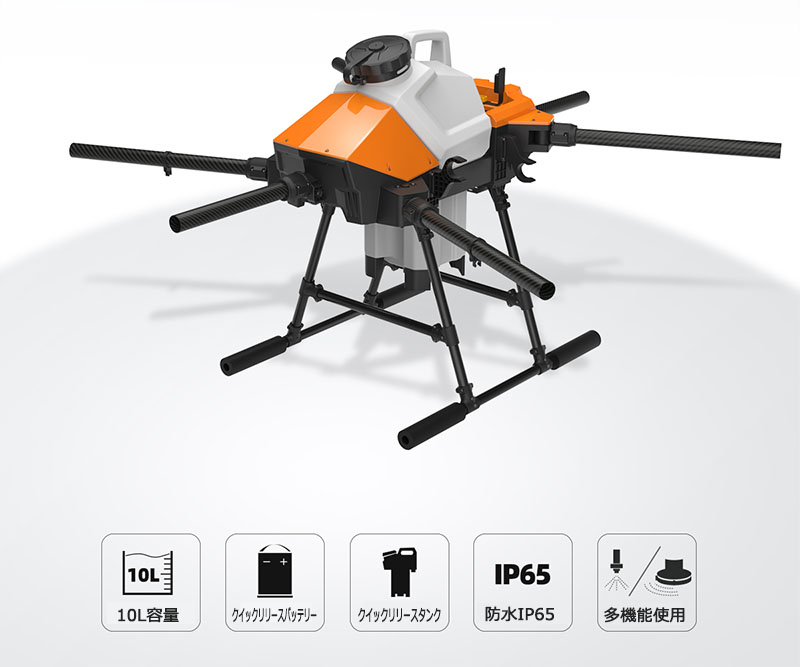 人気のあるG06とG20のクイックリリースタイプの機体が続いてG10シリーズ10L農業用スプレードローンも発表しました。