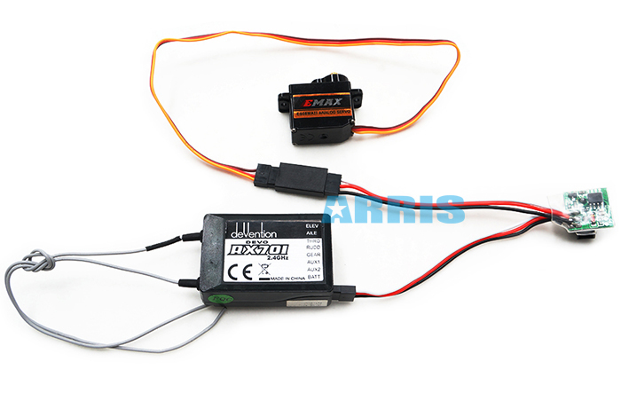 2. トレーサーをRC航空機に接続し、そして、送信機の電源を入れ、その後受信機も電源を入れると、2×ビープ音が出ます。