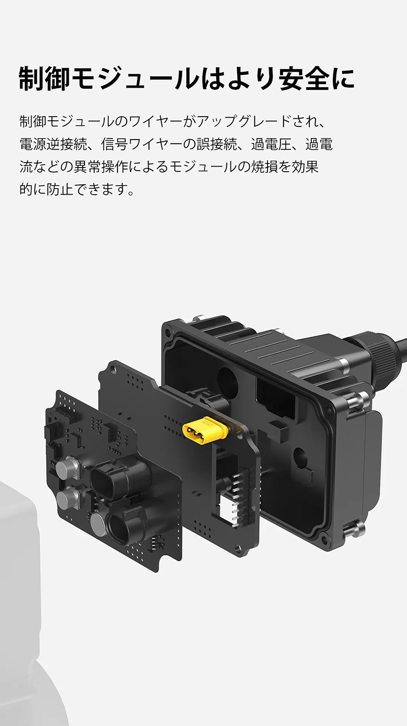 制御モジュールのワイヤーがアップグレードされ、電源逆接続、信号ワイヤーの誤接続、過電圧、過電流などの異常操作によるモジュールの焼損を効果的に防止できます。
