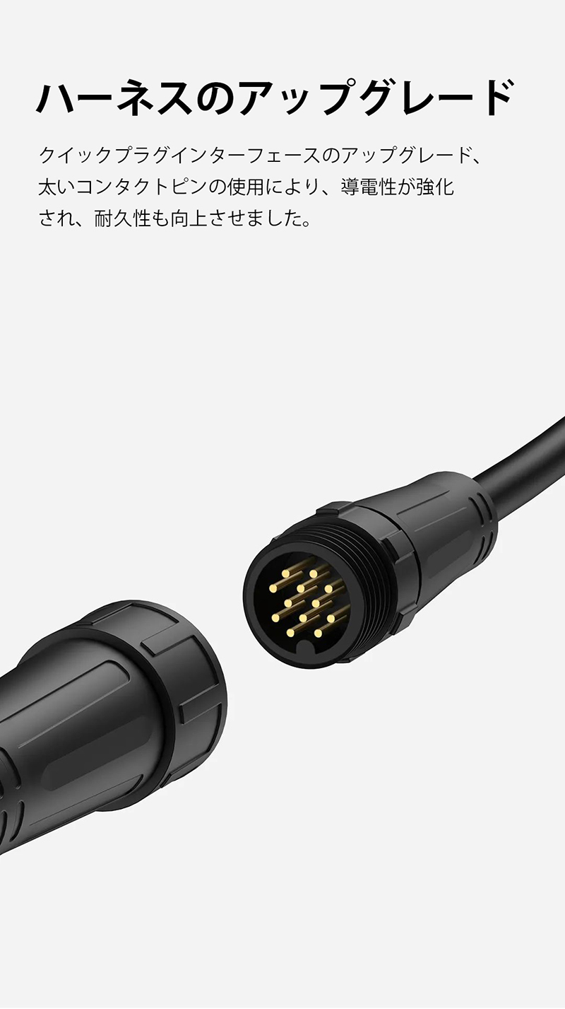 クイックプラグインターフェースのアップグレード、太いコンタクトピンの使用により、導電性が強化され、耐久性も向上させました。