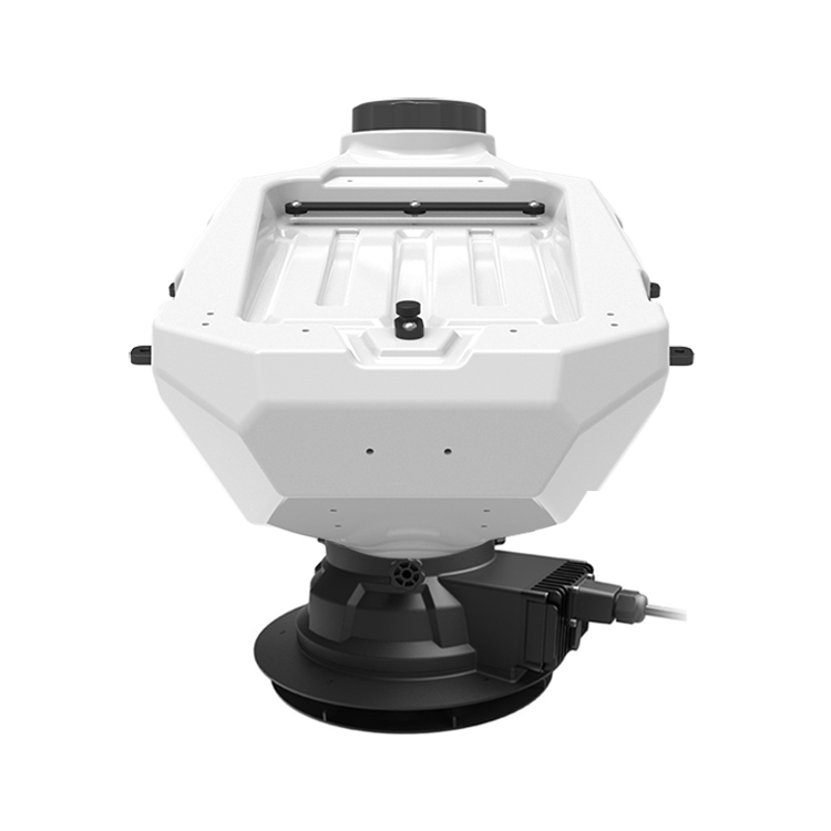 ARRIS粒剤散布装置は、0.5〜6 mmの粒状農薬、肥料、種子、餌などの散布を行うことができます。ペイロードは10 kgです。インペラ回転数(回転速度)とシャッター開度も調節可)で、粒剤が被らずに均一散布ができます。