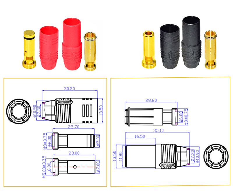 AS150アンチスパーク端子 オスメスセット (赤/黒各1ペア)*1