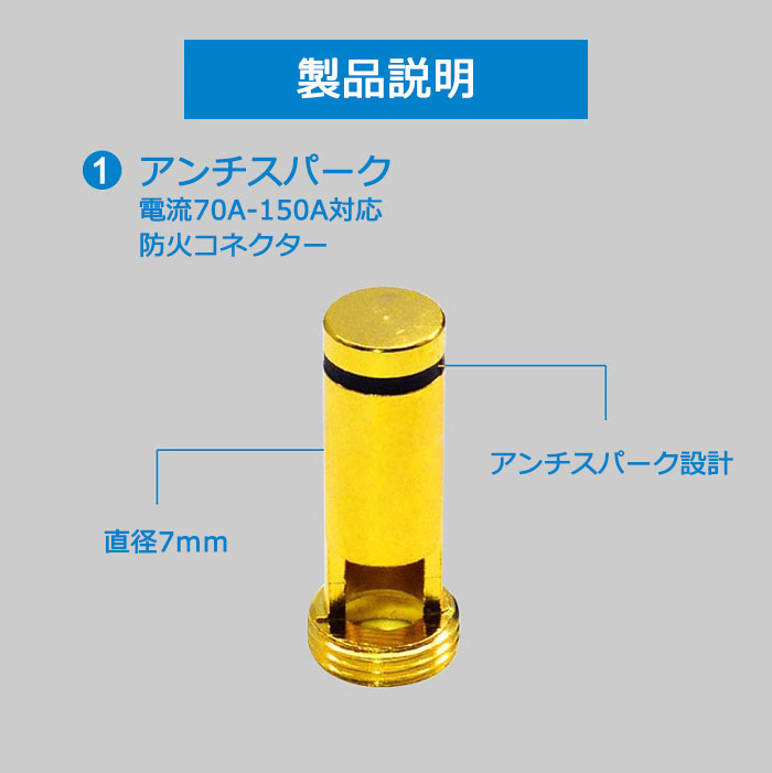 3. オスφ7mmピンの火花防止設計は、高電圧バッテリーに適しています(定格60A、瞬時90A)