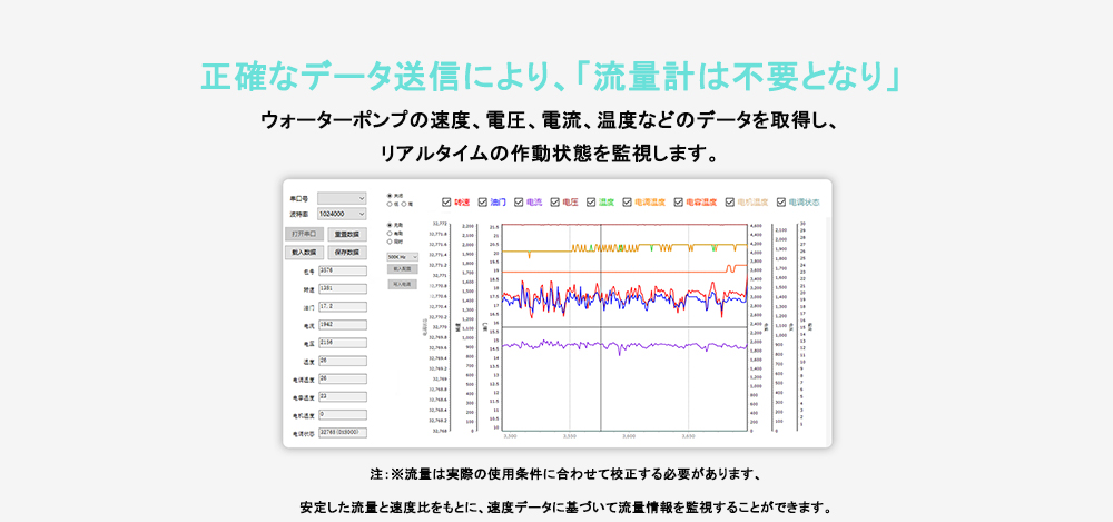 データ伝送機能があり、ポンプの速度、電圧、電流、温度などのデータを取得し、リアルタイムの作動状態を監視できます。