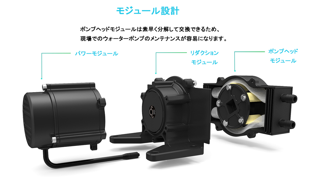 ポンプヘッドモジュールは素早く分解して交換できるため、現場でのウォーターポンプのメンテナンスが容易になります。