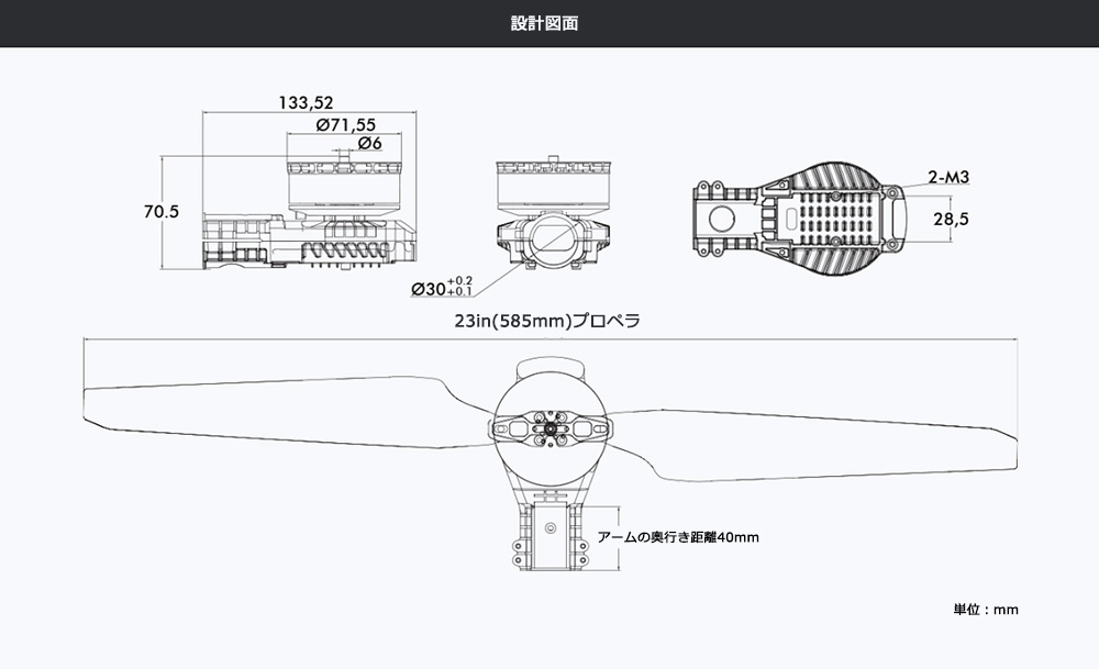 パワーシステム重量:710g±2%(プロペラ含む)