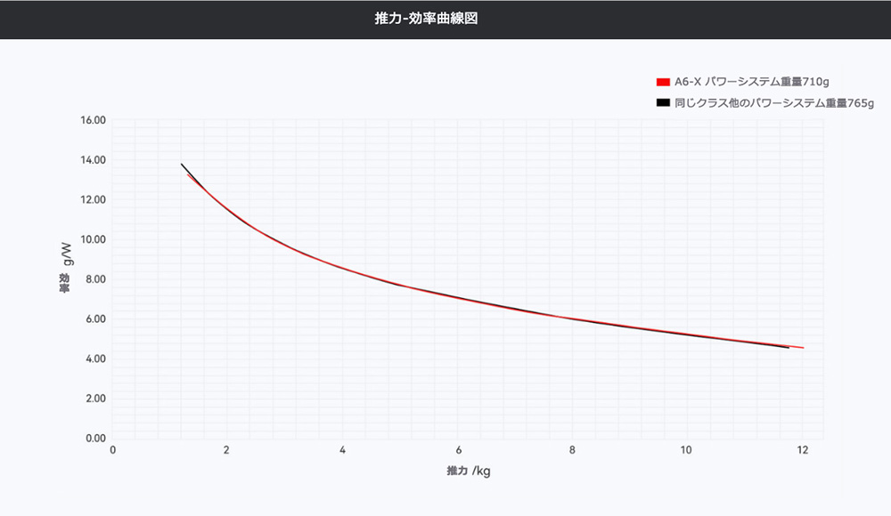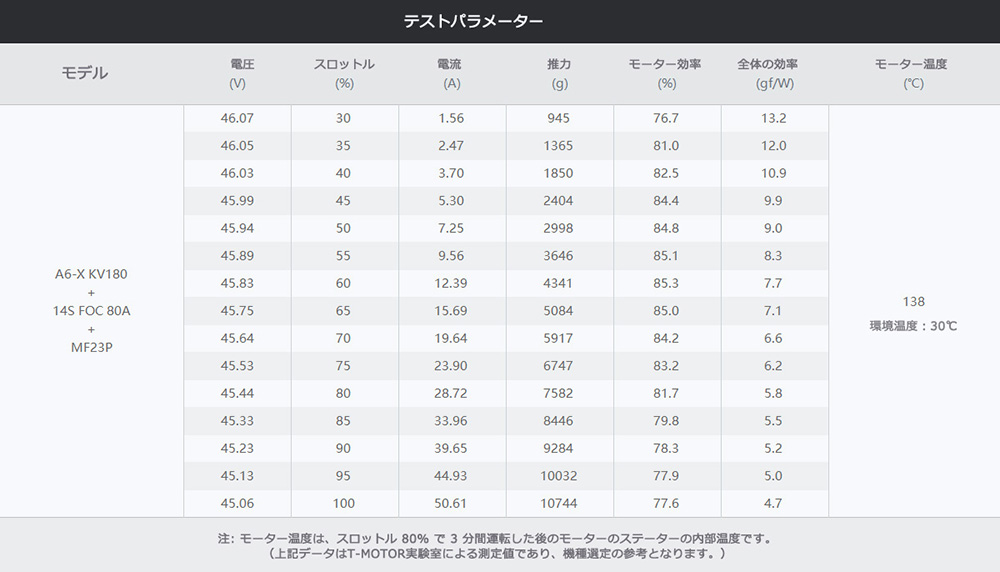 定格推力効率:8.4g/W(3.5kg)
