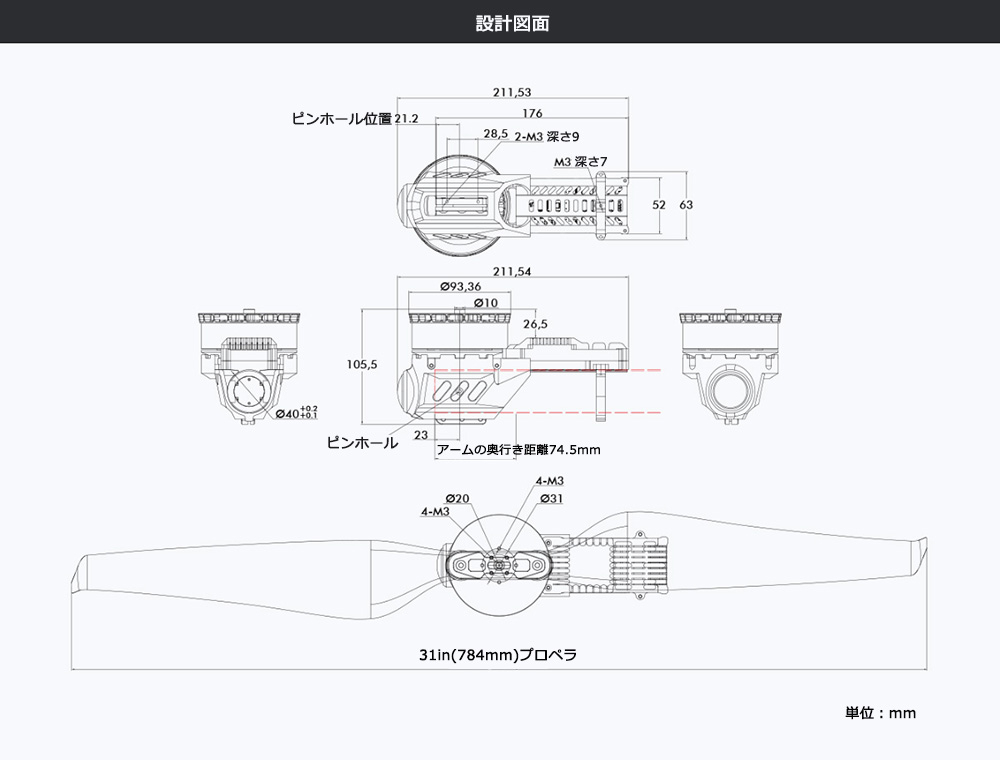 パワーシステム重量:1250g±2%(プロペラ含む)