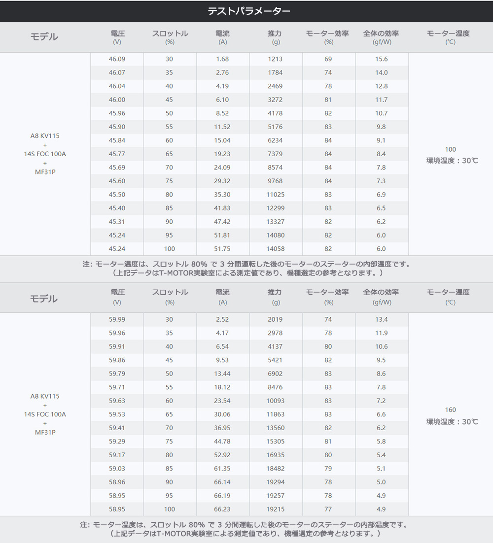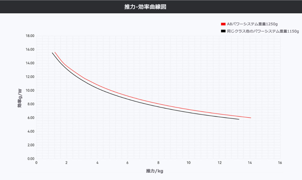 定格推力効率:8.5g/W(7kg)