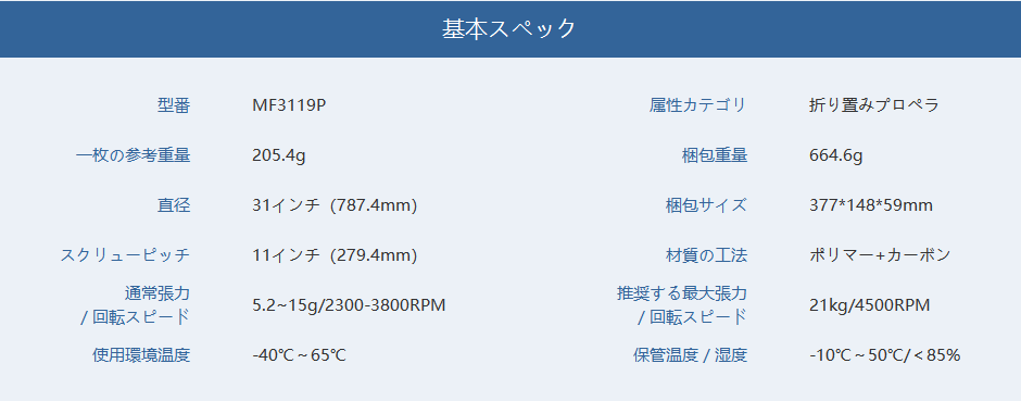 T-MOTOR MF3119Pプロペラセット折り畳み式 CW+CCW