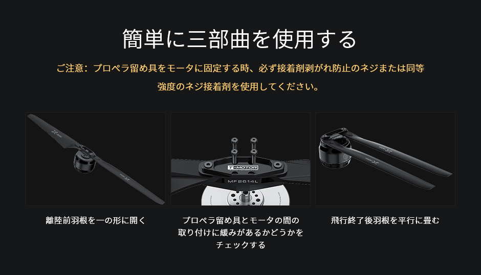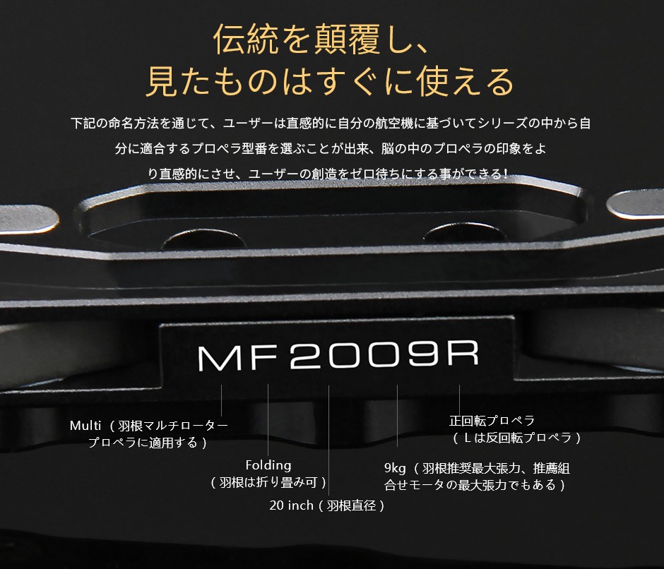 T-MOTOR MF2009 20インチ 高品質ポリマー 折り畳みプロペラセット CW+CCW