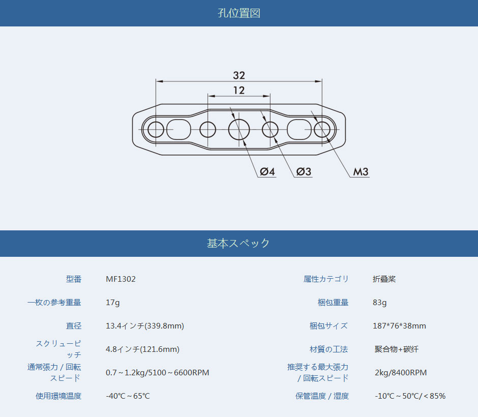 一般的な推力/スピード:0.7~1.2kg/5100~6600Rpm