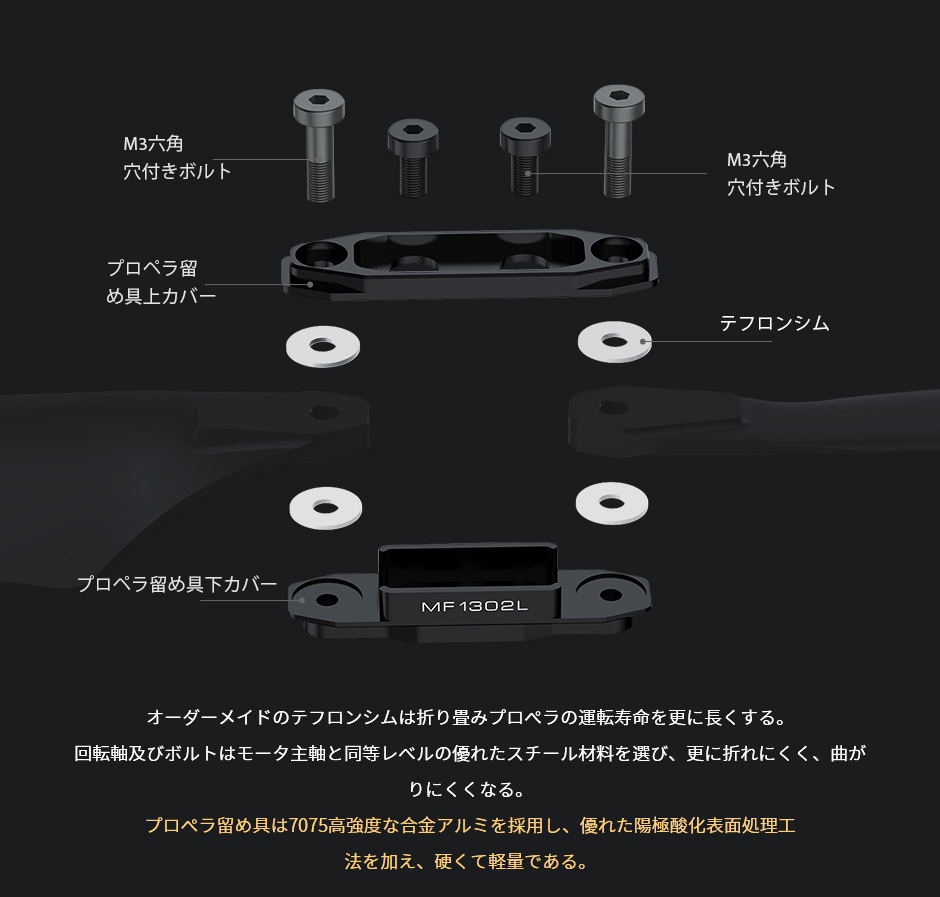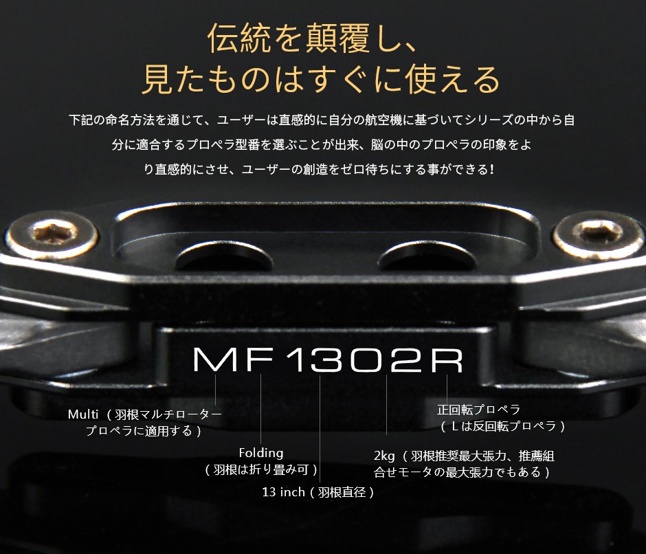 T-MOTOR M1302 13インチ 高品質ポリマー 折り畳みプロペラセットCW+CCW