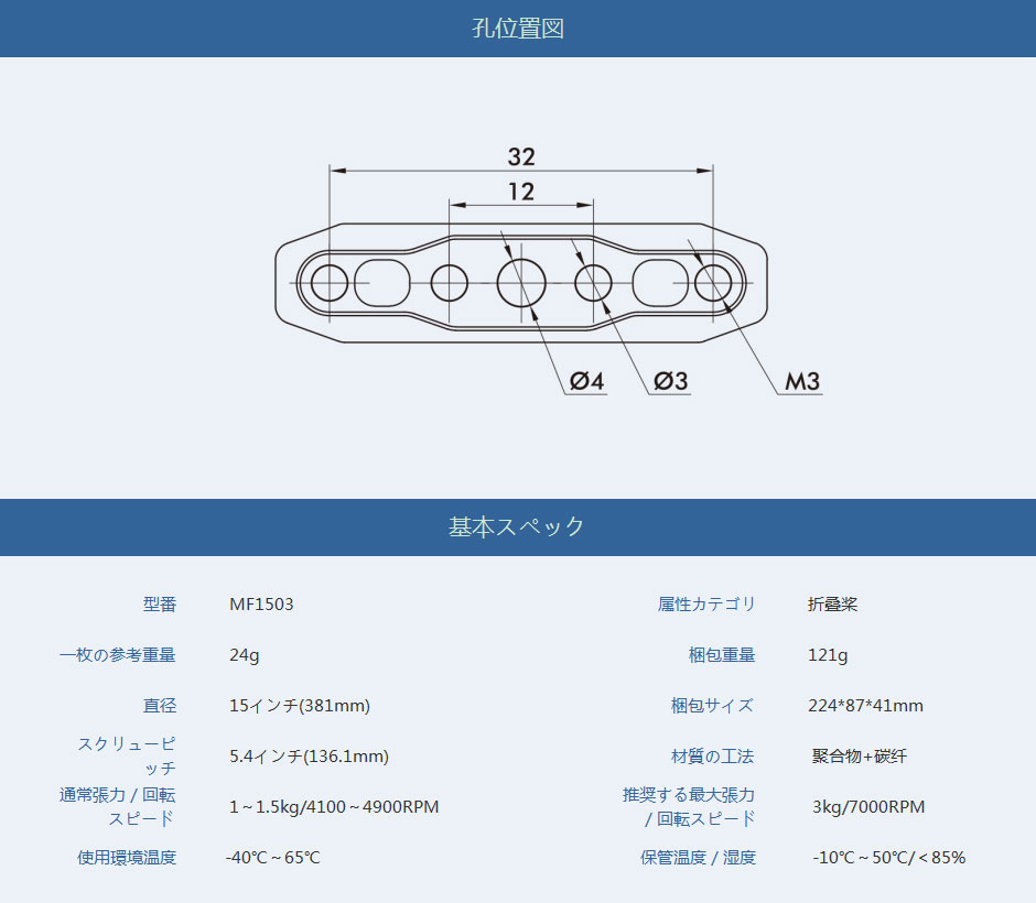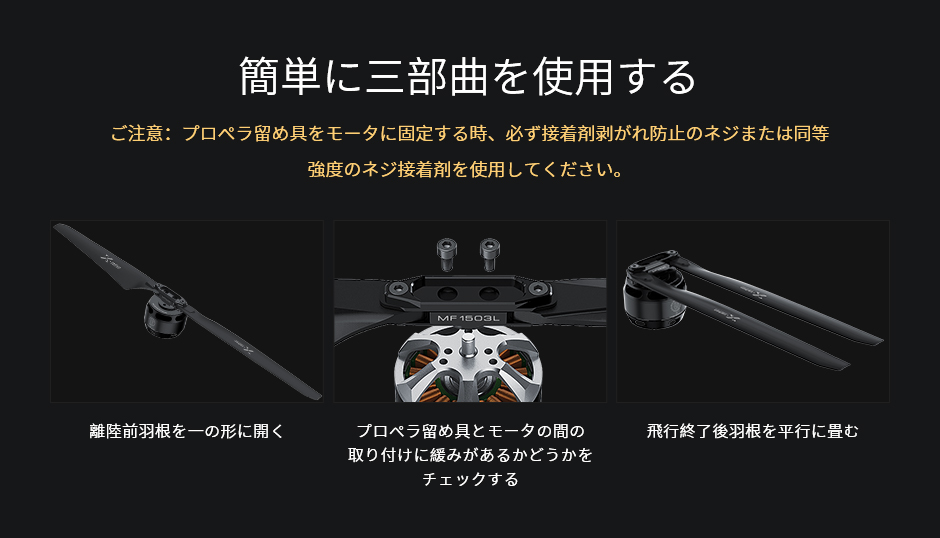 T-MOTOR M1503 15インチ 高品質ポリマー 折り畳みプロペラセットCW+CCW