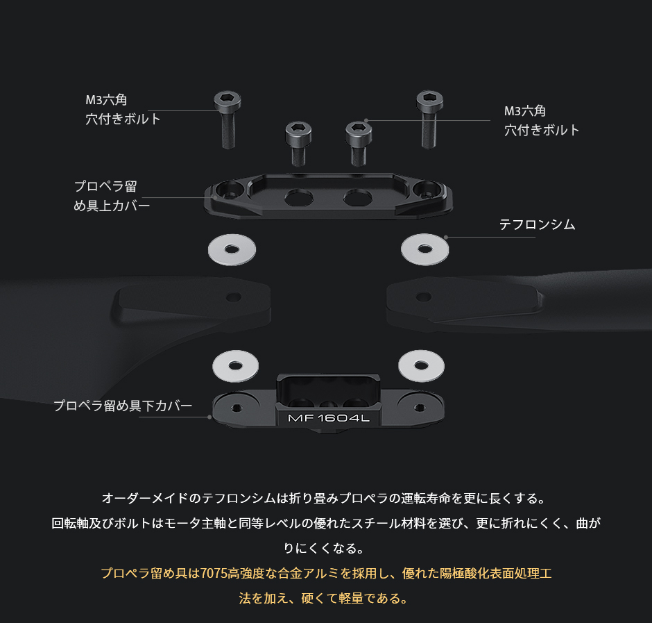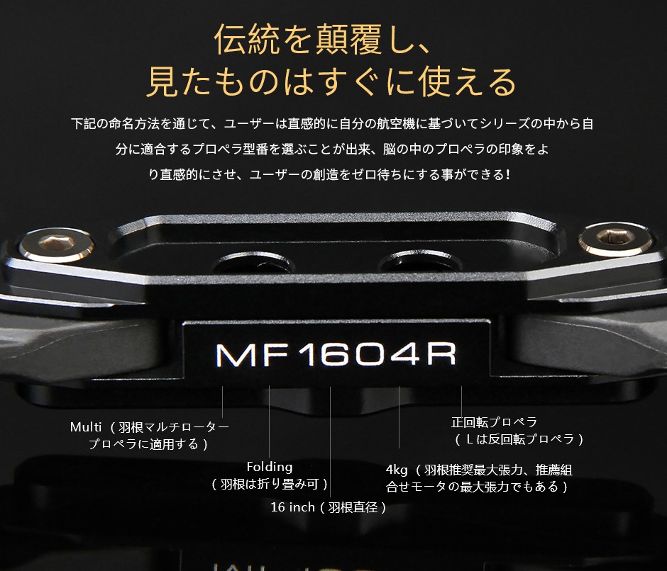 T-MOTOR M1604 16インチ 高品質ポリマー 折り畳みプロペラセットCW+CCW