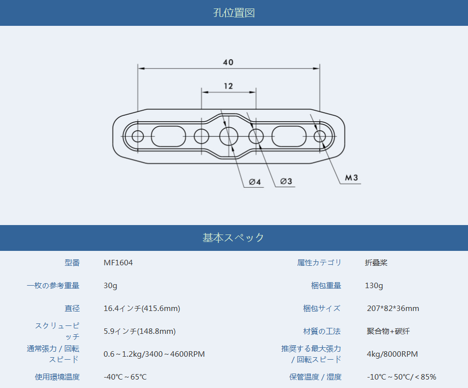 一般的な推力/スピード:0.6~1.2kg3400~4600Rpm