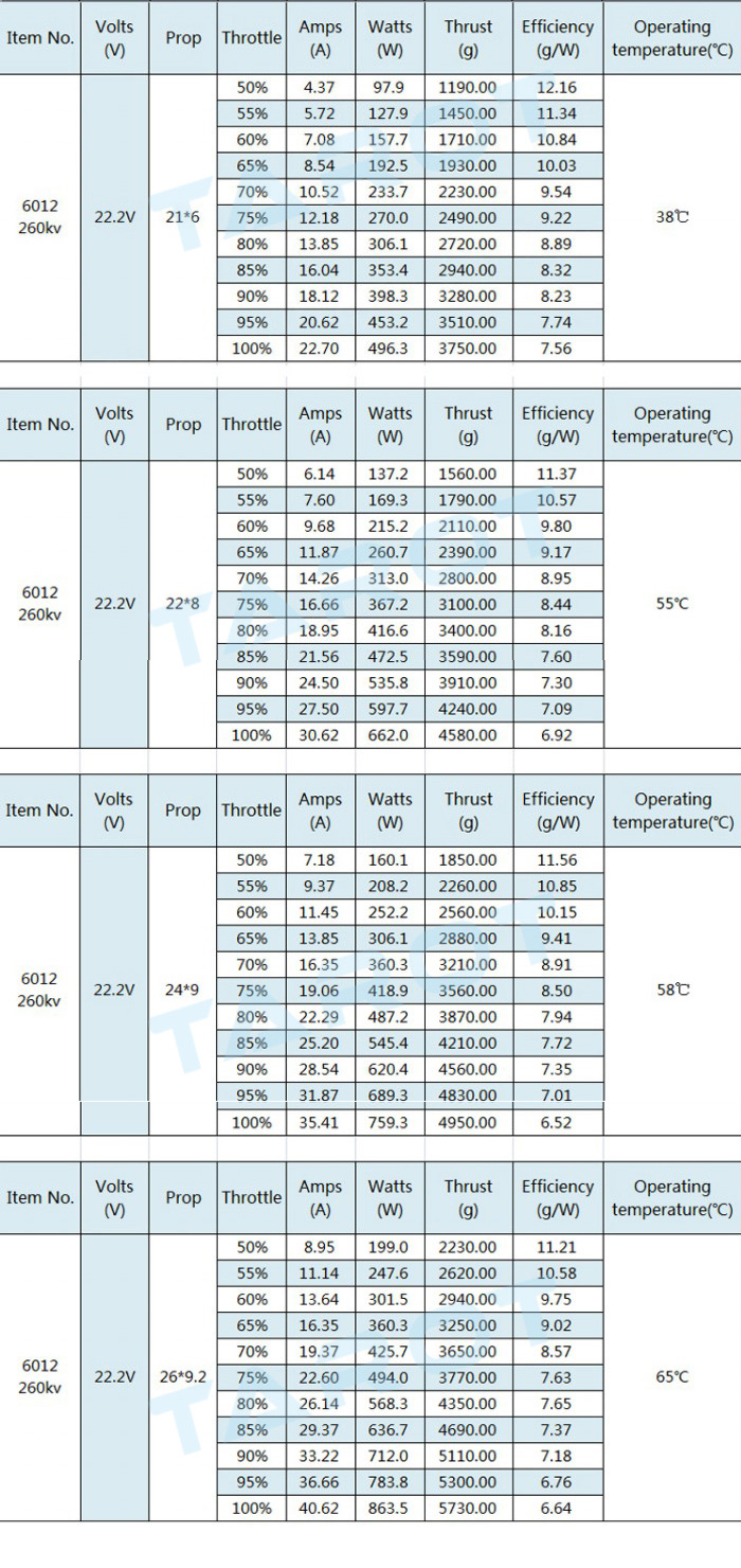 高精度CNC加工(精密度0.001mm)。各完成品または半完成品は、厳密な品質検査(0.01 mm)を受けっており、各モーターの一致性を保証します。軽量、高強度、熱放散は6012 / 260kvモーターのの新設計コンセプトで、高精度ダイナミックバランサー機器でローターを最高精度に調整しました(0.05g内)。