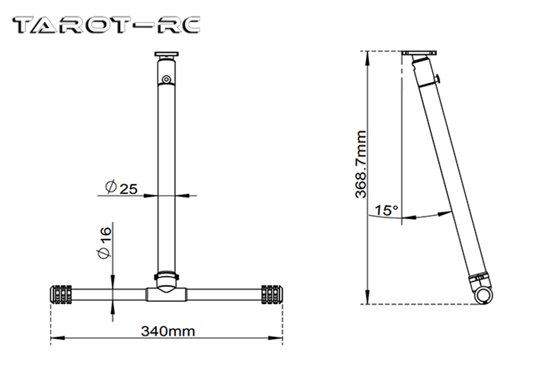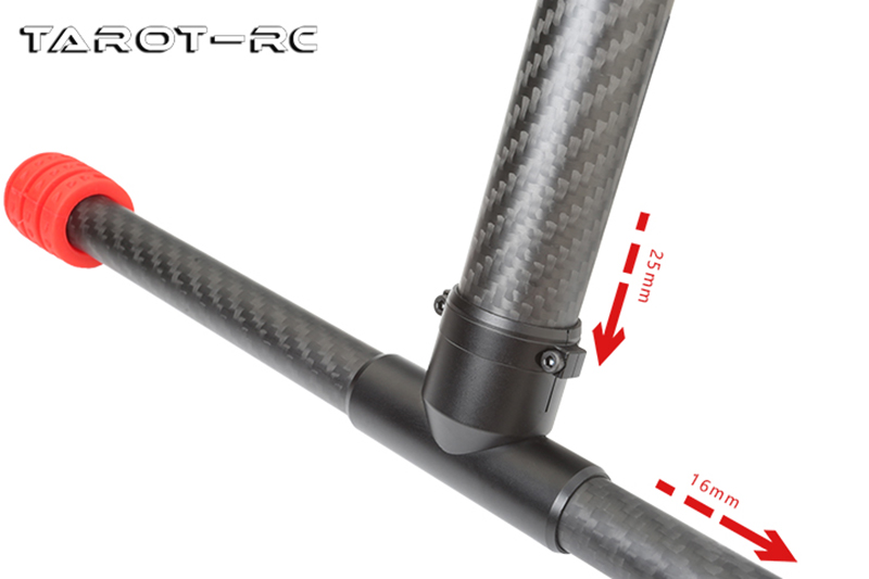 金属製の T 字型コネクターの縦方向のチューブの長さは 305 mm、横方向のチューブ長さは 333 mm で、ほとんどの中型および大型マルチコプターに対応できます。