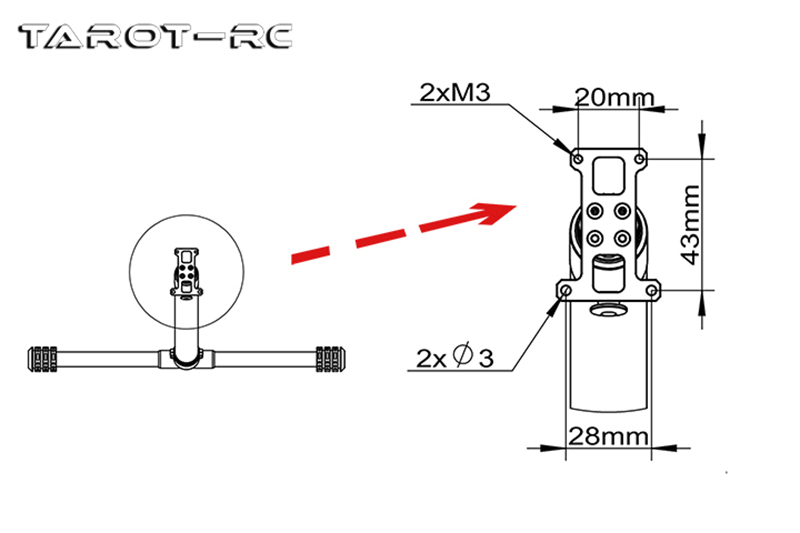 、ドローン接続部分は4点対称の穴で固定されており、Tarot X8シリーズのドローンに直接使用できますが、他ののモデルには図面に従って穴を開けて取り付ける必要があります。