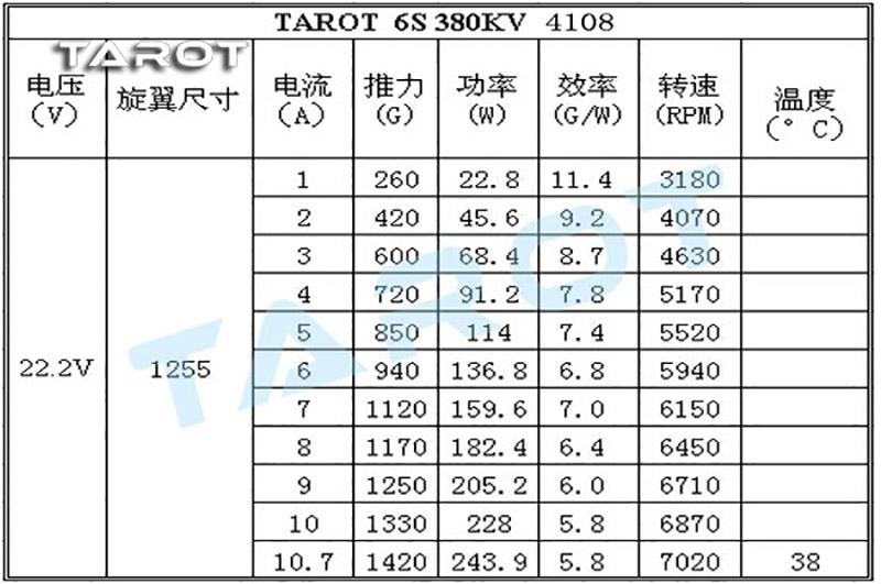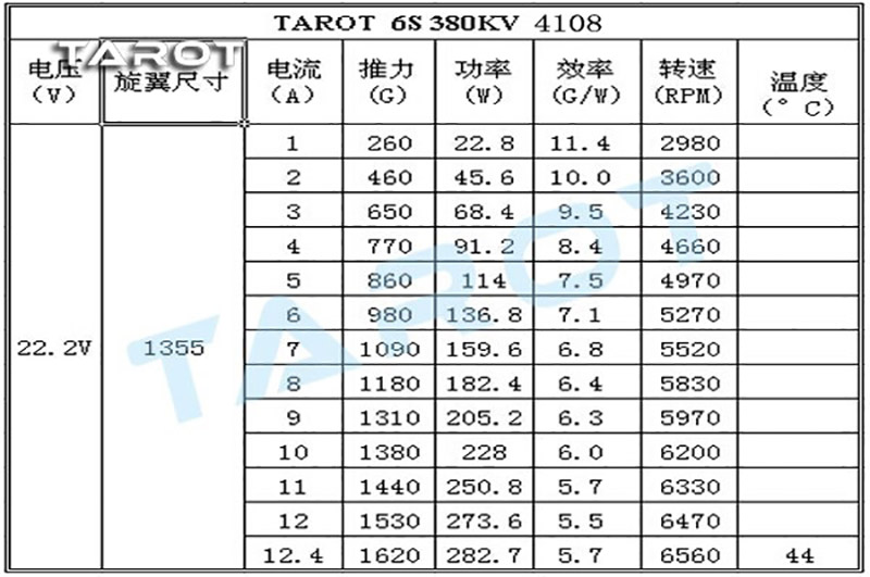 Tarot 4108 380kv ブラシレスモーター 6S RC ドローン用 TL68P07