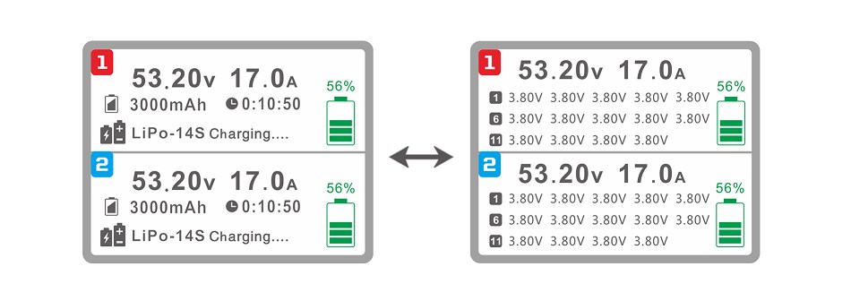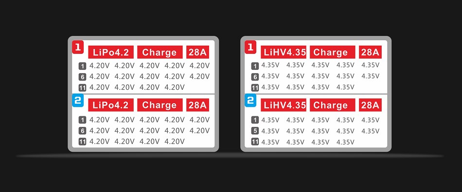 2個の6-14S LiPO/LiHVバッテリーを同時充電