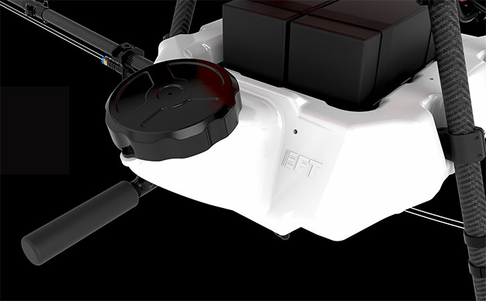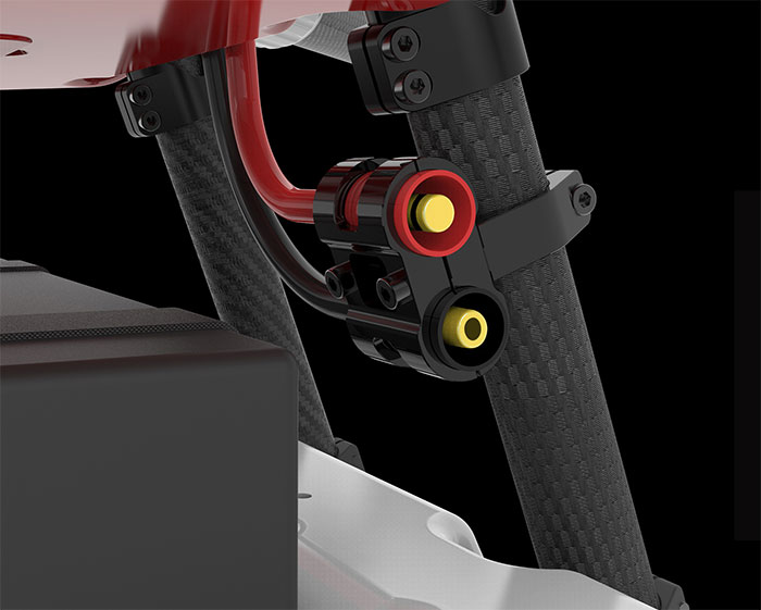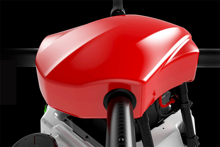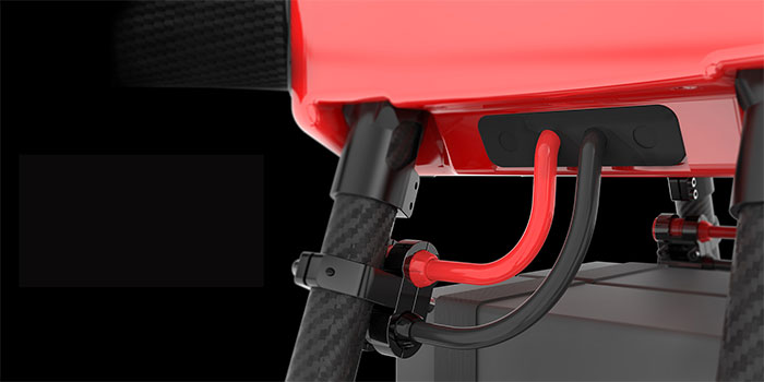 機体の横側と底側に複数のケーブル通過口も付いておりますので、RTKやポンプ、レーダーなどの拡張設備を取り付ける場合、ケーブルはケーブル通過口を通して、本当な防水仕様をを実現します。