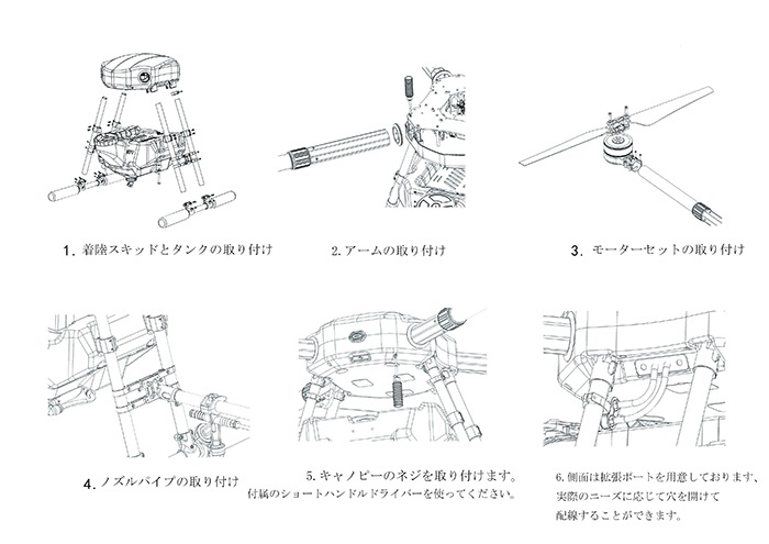 *セットの内容品:ドローンの機体+キャノピー+センタープレート+着陸装置+液体タンク+噴霧システム。動力セットとフライトコントローラなどは別売りです。
