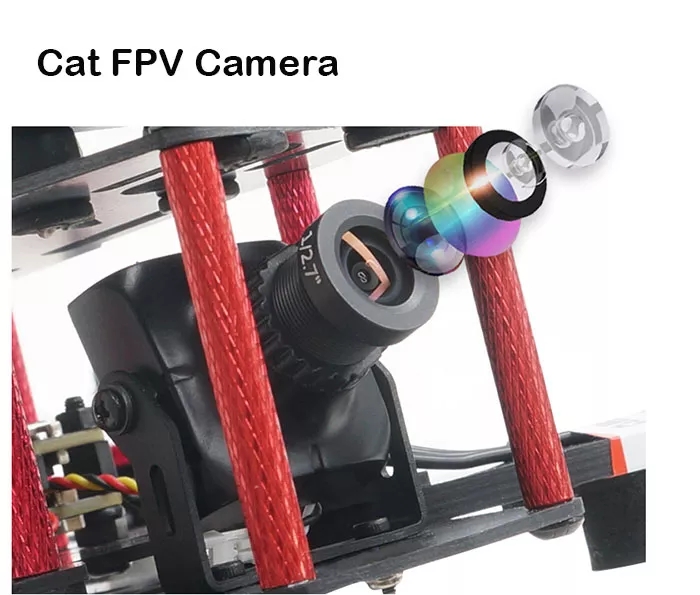 カメラをfpv ドローンで最も人気のあるCat fpvカメラにアップグレードします。カメラの角度は0〜45度角度調整可能です(ピッチアップ)。さまざまな状況での要件を満たすことができます