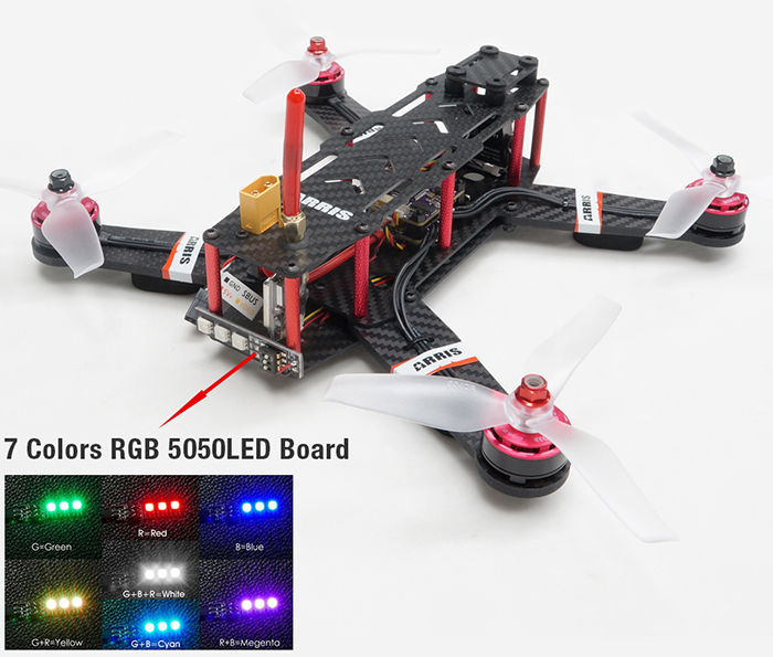高輝度LED ARRIS X-Speed 250Bには高輝度LEDが付属しており、DIPスイッチでLEDライトの色を変更できます.7色から選択できます.