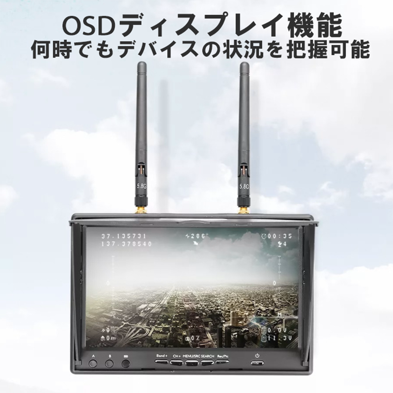 OSD表示機能:何時でもデバイスの状況を把握可能。自動信号探索機能により簡単な操作を実現 。5バンド、40チャンネル仕様。
