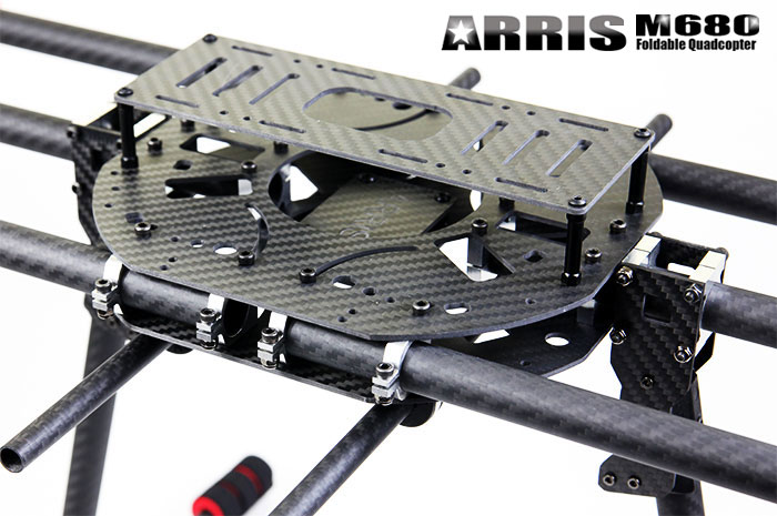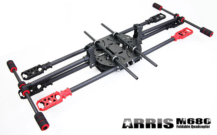 ARRIS M680はプロ空撮プレーヤーのために設計された高性能のヘビーリフト6ローター航空機です。このマルチコプターは目方が軽くて、超剛性カーボンファイバー材料で作られました。ほかのマルチコプターと違い、ARRIS M680折り畳みマルチコプターはかさが小さいし、便利に持ち歩けますし、数回繰り返した後に脆くになることを防ぐスーパーリジッド折りたたみ式クランプホルダーを使用しています。また、更に多いジンバルに汎用性を持つために、ARRIS M680は長いランディングスキッドを採用しています。ARRIS CM2000、CM3000だけではなく、ARRIS ZHAOYUNも載せて、映像を撮ることが可能となります。ARRIS ZHAO YUNを載せるARRIS M680は5200mahのバッテリーを取り付けている場合、12分ぐらいフライトできます。このマルチコプターの強さ、安定性及び持ち運びの便利さなどから見ると、ARRIS M680はキット素晴らしいフライト体験をすることでしょう。