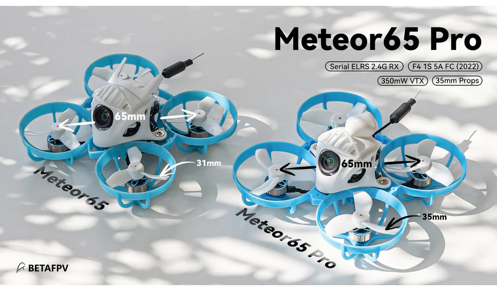 Meteor65 Proフレームは、人気のMeteor65フレームと同じ完璧な性能を備えています。35mmプロペラに対応した最軽量ロープロファイル65mmフレーム。バッテリースロットを重心に近づけることで、よりスムーズな飛行を実現し、バッテリーではなくモータースクリューに着地することになります。新しいMeteor65 Proは35mmプロペラを採用し、パワーと機敏性をアップしました。それ以外にも、シリアルExpressLRS 2.4G内蔵のF4 1S 5A FC (2022)、さいだい350mWのM03 VTX、19500KVの0802SEモーター、C03 FPVカメラなどMeteor65とほぼ同じコンポーネントと機能を持ち、全ての性能面でかんぜんにバランスが取れています。