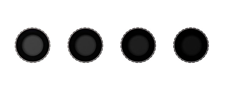 4種類のフィルターは、指紋防止コーティングでカバーされ、様々な照明条件下での撮影シーンでの要求を完全に満たします。これらのフィルターにより、カメラレンズに入る光の量を低減させ、明るい環境でも完璧な撮影を簡単に行えます。フィルターのきざみ付きノブで、レンズにシームレスに取り付けることができます。