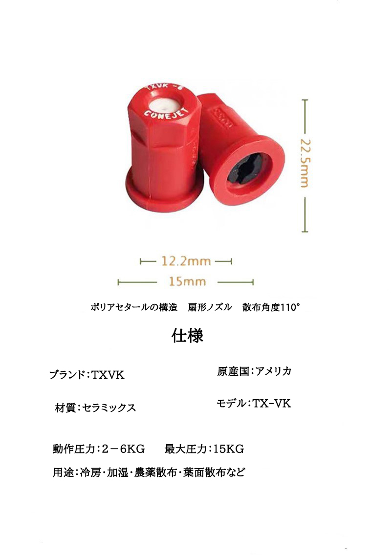 Teejet TXVKノズル DJI T30 農薬散布ドローンパーツ(1PCS)