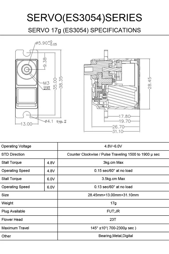 1 x EMAX ES3054 17gメタルデジタルサーボ