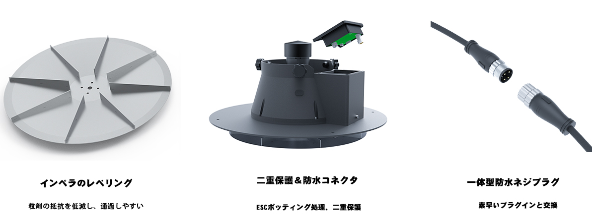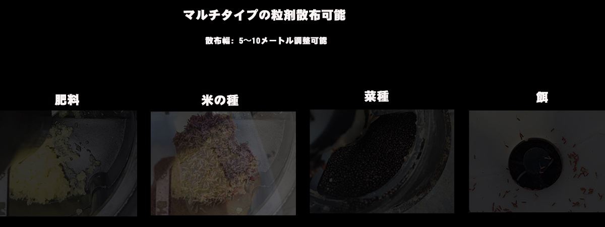 散布幅: 5-10メートル調整可能、様々の粒剤も対応可能です: