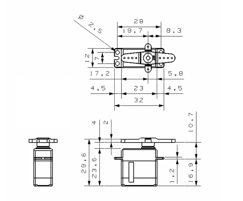 トルク:2.50Kg.cm @ 4.8V; 3.0kg@6.0V