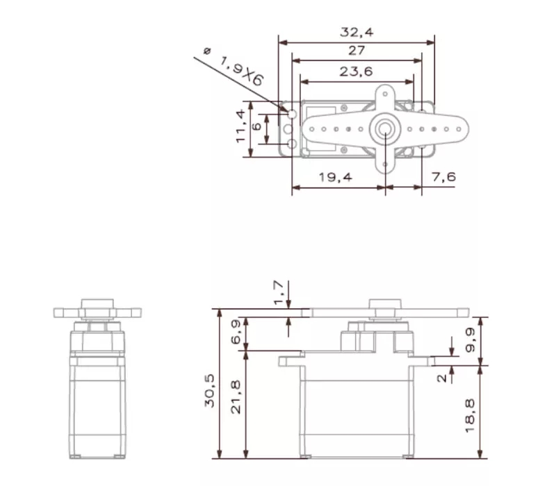 トルク:2.20Kg.cm@6.0V; 1.80Kg.cm@4.8V