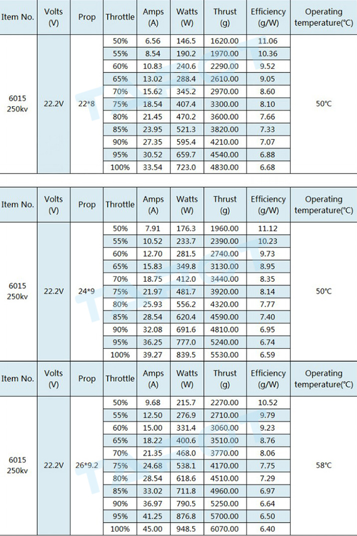 高精度CNC加工(精密度0.001mm)。各完成品または半完成品は、厳密な品質検査(0.01 mm)を受けっており、各モーターの一致性を保証します。軽量、高強度、熱放散は6015 / 250kvモーターのの新設計コンセプトで、高精度ダイナミックバランサー機器でローターを最高精度に調整しました(0.05g内)。