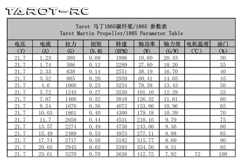 Tarot は性能を向上させるために最適化された新しい翼型設計を採用し、機体は独自の炭素繊維プリプレグ内圧成形プロセスを採用し、固化と成形に 5 時間かかります。